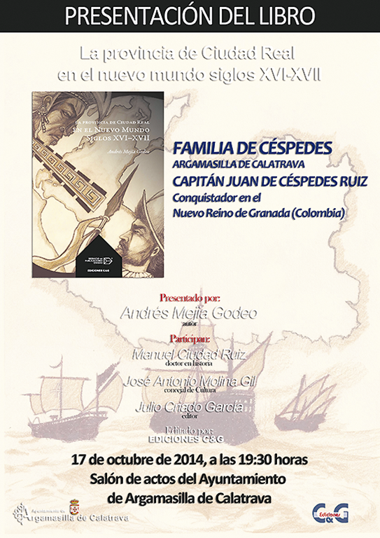 El Salón de Actos del ayuntamiento de Argamasilla de Calatrava acogerá la conferencia de Andrés Mejía Godeo sobre Juan de Céspedes y su familia en la conquista de América