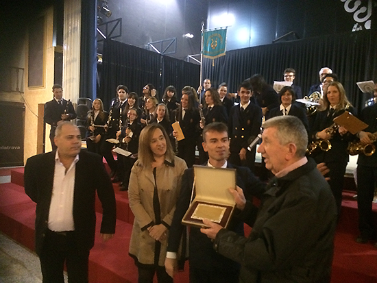 La banda de música rinde homenaje a su primer director, Juan Cañadas, con la entrega de una placa por parte de la alcaldesa, Jacinta Monroy