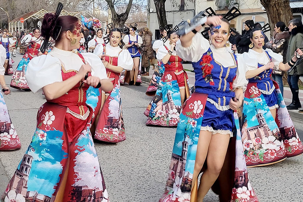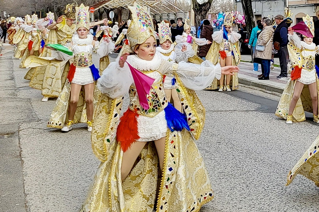 Los grupos participantes recorrieron las calles Mayor y Cervantes hasta finalizar en la esquina con la calle Pinto, exhibiendo coreografías y disfraces que puntuaron en aspectos como la temática representada, el diseño y elaboración de los elementos, así como la puesta en escena durante el trayecto.