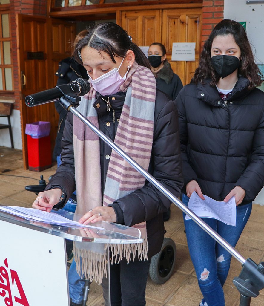 La voz de Beatriz y Patricia, estudiantes de segundo de Bachillerato en el Instituto ‘Alonso Quijano’, ha servido hoy 8 de Marzo, Día Internacional de la Mujer, para dar a conocer el comprometido manifiesto que clama por la igualdad y el respeto a todas las mujeres.