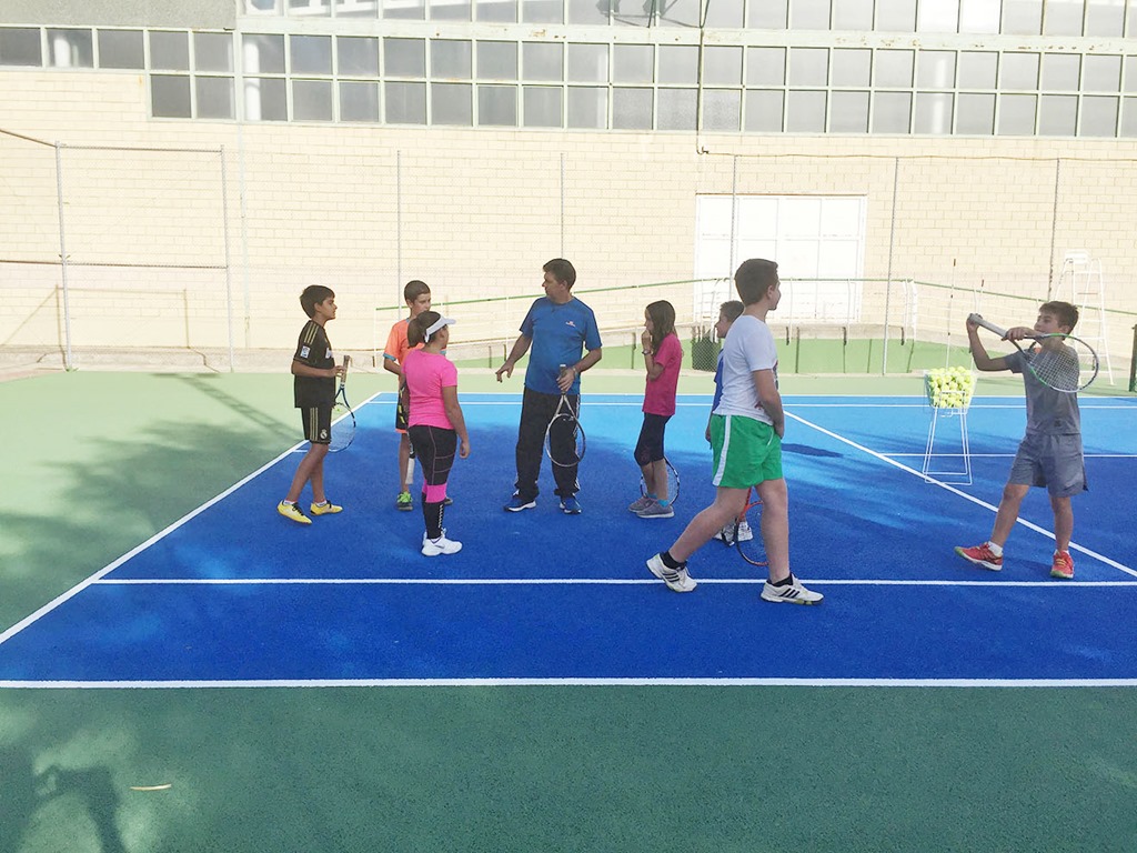 La principal actuación de reforma ha consistido 20161011 Algunos de los alumnos%2c junto al monitor de la actividaden la ejecución de una nueva capa de hormigón poroso sobre las anteriores pistas, algo de lo que se felicitaron quienes estuvieron en el acto, entre otras, la alcaldesa de Argamasilla de Calatrava, Jacinta Monroy Torrico; el concejal de Deportes, Jacinto Arriaga Arcediano; y el presidente del Club de Tenis, Francisco José Risco Sánchez.