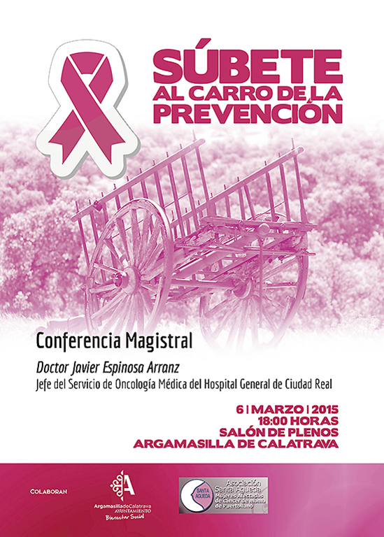 Dentro de los actos organizados para conmemorar el Día Internacional de la mujer, que como cada año se celebrará el próximo ocho de marzo, domingo, el ayuntamiento de Argamasilla de calatrava ha organizado, como previo el viernes 6 de esta semana, una conferencia a cargo de Javier Espinosa Arranz, que es el jefe de oncología médica del Hospital General y Universitario de Ciudad Real. Desde el consistorio se anima a todas las mujeres y hombre a que asistan al acto, ya que puede ser de gran utilidad de cara a prevenir y detectar precozmente la enfermedad.