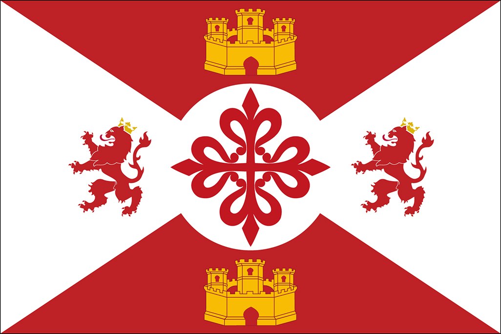 Así, la nueva enseña va a estar dividida “en cuatro cuarteles dispuestos en sotuer o aspa: los dos centrales, superior e inferior en color rojo con un castillo amarillo cada una, representando al reino de Castilla; los cuarteles laterales, junto al vuelo y junto al asta, en blanco, con un león rojo coronado en amarillo, representando al reino de León. En el centro, sobre un círculo blanco, la Cruz de Calatrava en rojo”.