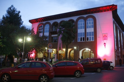 Tras la lectura del manifiesto se procedió a iluminar en rosa la fachada del ayuntamiento, de forma simultánea al acto de encendido de la Casa de Baños de Puertollano, sumándose así a la campaña estatal de apoyo a las mujeres mastectomizadas.