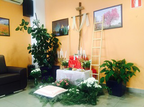 El centro de mayores de la localidad se ha sumado a la celebración confeccionando y adornando entre los usuarios una cruz, en colaboración con el concejo de mayores, que ha sido instalada en la sala principal de la cafetería del centro. Participan con ella en el concurso de cruces que ha organizado el consistorio.