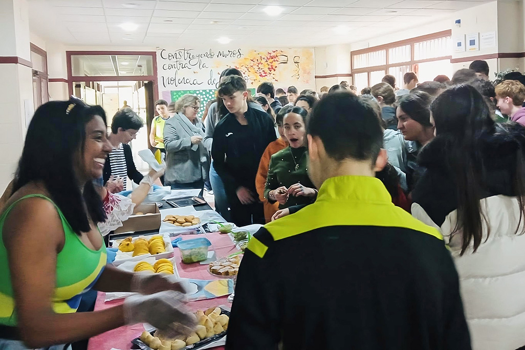 Con tal motivo, el vestíbulo del centro docente albergaba ayer una actividad denominada ‘Comidas del Mundo’ para, durante el horario del recreo, en torno a las 11,15 horas, ofrecer a jóvenes estudiantes la degustación de platos de distintos países.