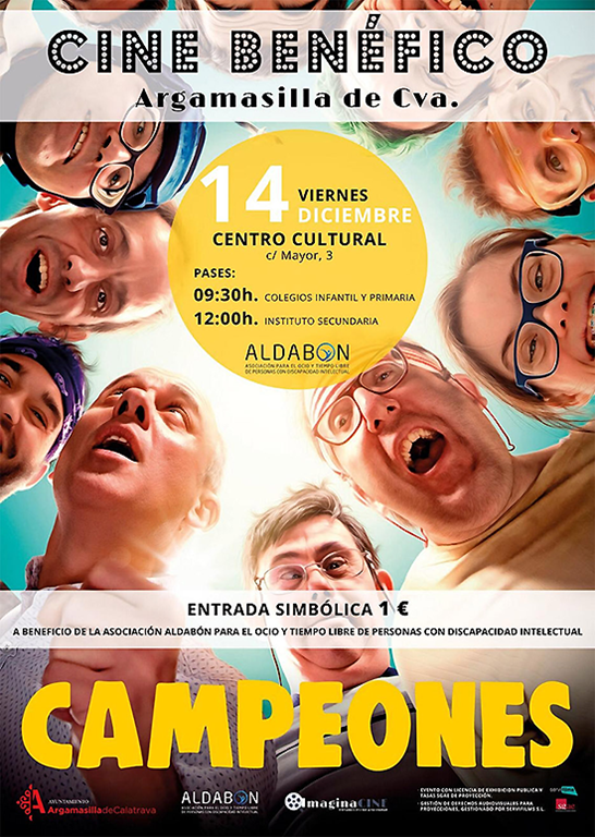 El vivificante ejemplo de valores que proyecta la película ‘Campeones’, que aborda con toda la naturalidad posible el ámbito humano y cotidiano de personas con discapacidad intelectual, será este viernes argumento para escolares de los Colegios ‘Virgen del Socorro’ y ‘Rodríguez Marín’, así como del Instituto ‘Alonso Quijano’.