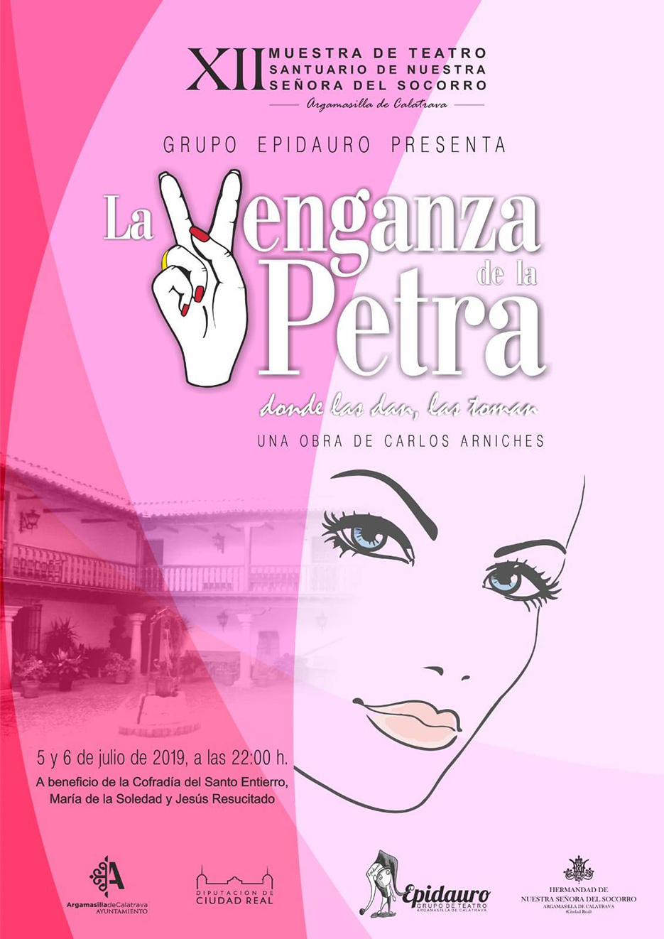 Este viernes 6 y sábado 6 de julio los aficionados al arte dramático tendrán la ocasión de disfrutar de la XII Muestra de Teatro de Argamasilla de Calatrava, que nuevamente se celebrará en el santuario de la Virgen del Socorro, organizada un año más el grupo de teatro ‘Epidauro’, la Hermandad de la patrona rabanera y el propio Ayuntamiento.