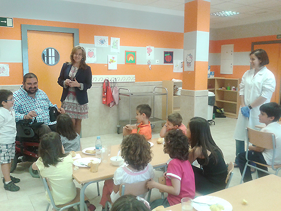 La alcaldesa, Jacinta Monroy, acompañada del concejal de Bienestar Social, Sergio Gijón, han visitado el comedor escolar que atiende a entre 25 y 30 niños y niñas de los dos colegios de la localidad, favoreciendo que los padres puedan conciliar su vida laboral y familiar, con la tranquilidad de saber que los niños están perfectamente atendidos.