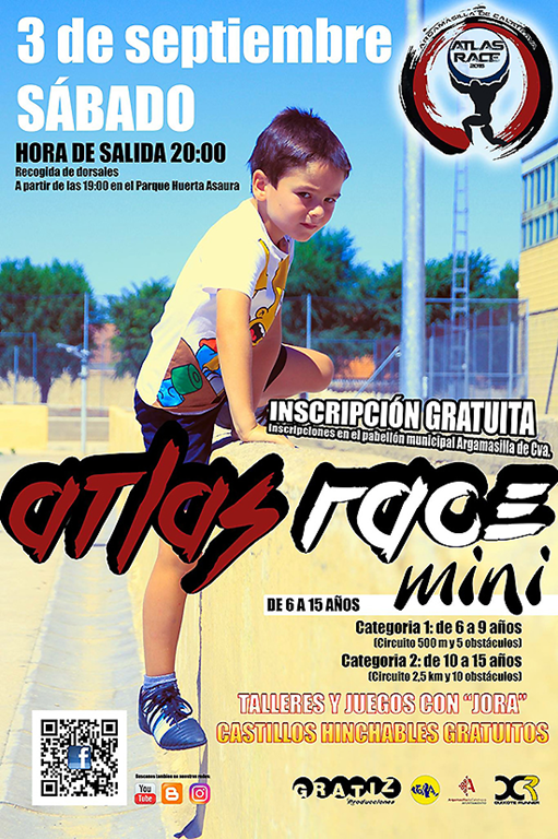 imageQuixote Runner junto a la Asociación Juvenil JORA y al Ayuntamiento de Argamasilla de Calatrava han organizado la versión infantil de la prestigiosa carrera Atlas Race, esta vez con el apellido Mini. Será la primera que se celebra en España y estará dirigida a niños de entre 6 y 15 años. La prueba va a tener lugar este mismo sábado, 3 de septiembre, a partir de las 20,00 horas.