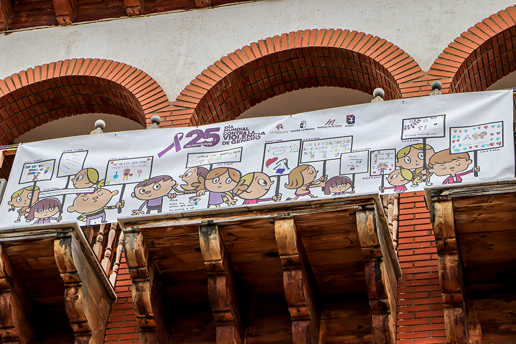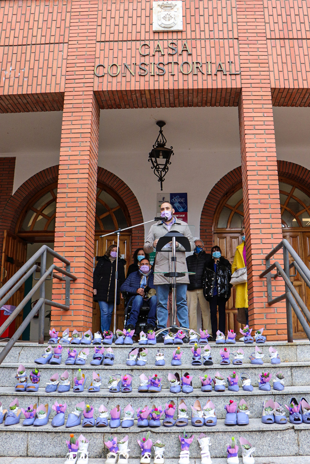 Bajo una pancarta con comprometidos mensajes infantiles alusivos a este Día Internacional de la Eliminación de la Violencia contra la Mujer, la fachada porticada del edificio consistorial ha concentrado la cita que cada 25 de noviembre tiene lugar.