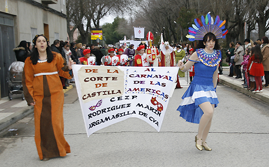 Doce murgas y comparsas, locales y foráneas, algunas integradas por hasta 100 componentes, llenaron de color el desfile de carnaval de Argamasilla de Calatrava, cuyas calles se llenaron de vecinos y visitantes para disfrutar de la imaginación y el trabajo que los distintos grupos que desfilaron han dedicado a preparar los trajes para el Desfile de Carnaval 2014.