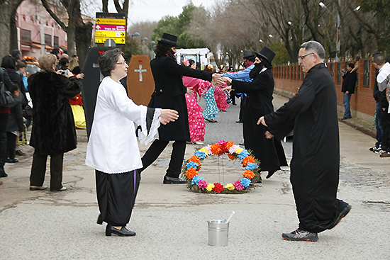 Y es que como no podía ser menos, los Amigos del Baile, consiguieron, además de un accésit, lo que es más importante divertir a todos los que, a pesar de lo desapacible de la tarde, no quisieron perderse el divertido desfile que tuvo lugar por las calles rabaneras el pasado domingo. Los ‘Amigos del Baile’ participaron en dicho desfile con ‘No estaba muerto’, donde los ‘muertos’ bailaban con gran alegría, acompañados de unas risueñas ‘plañideras’, un jocoso ‘enterrador’, unos divertidos ‘funerarios’, un ‘cura’ y un ‘monaguillo’ muy joviales, sin olvidarnos de una ‘muerte’ más que sandunguera, que encantó al público.